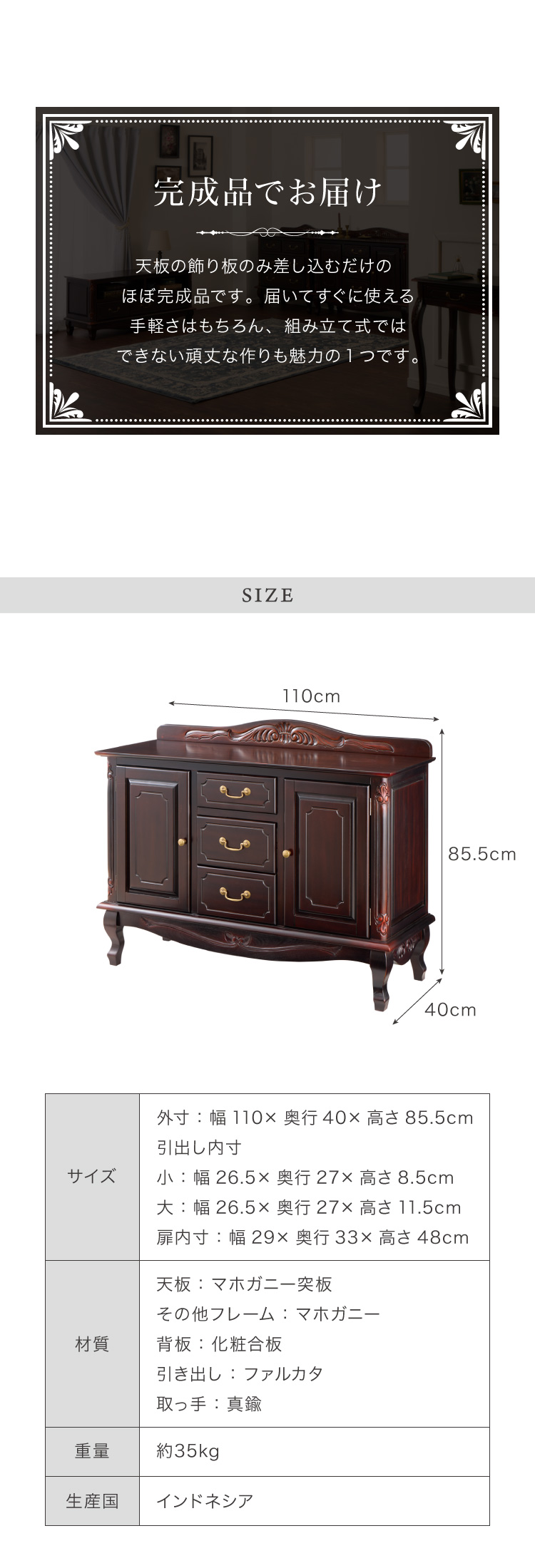 幅110×奥行40×高さ85.5cm