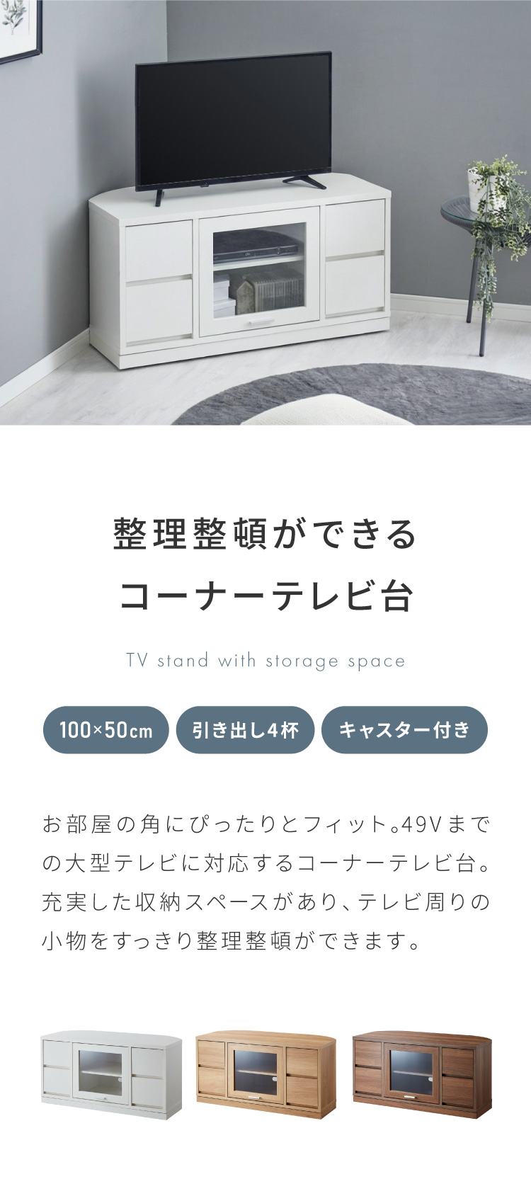 ガラス扉 左右にスウィングできるテレビ台 日本製 完成品 テレビ台 テレビボード コーナー 100cm 大型テレビ コーナーテレビ台 コーナータイプ