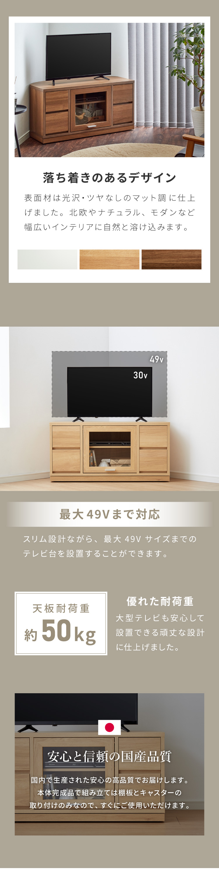 “暮らしが整うテレビ台”として、長く活用できる品質と使いやすさをぜひお楽しみください。