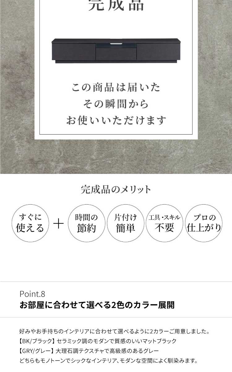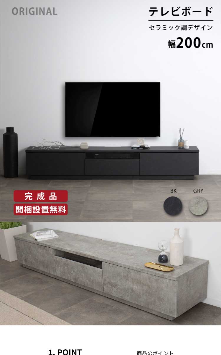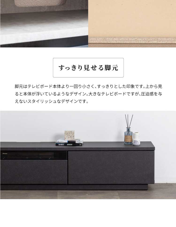 テレビ台 テレビボード 開梱設置付き 幅 200 cm 完成品 セラミック調 石目柄 ローボード おしゃれ 200cm 幅 リビングボード リモコン操作 収納 ブラック グレー