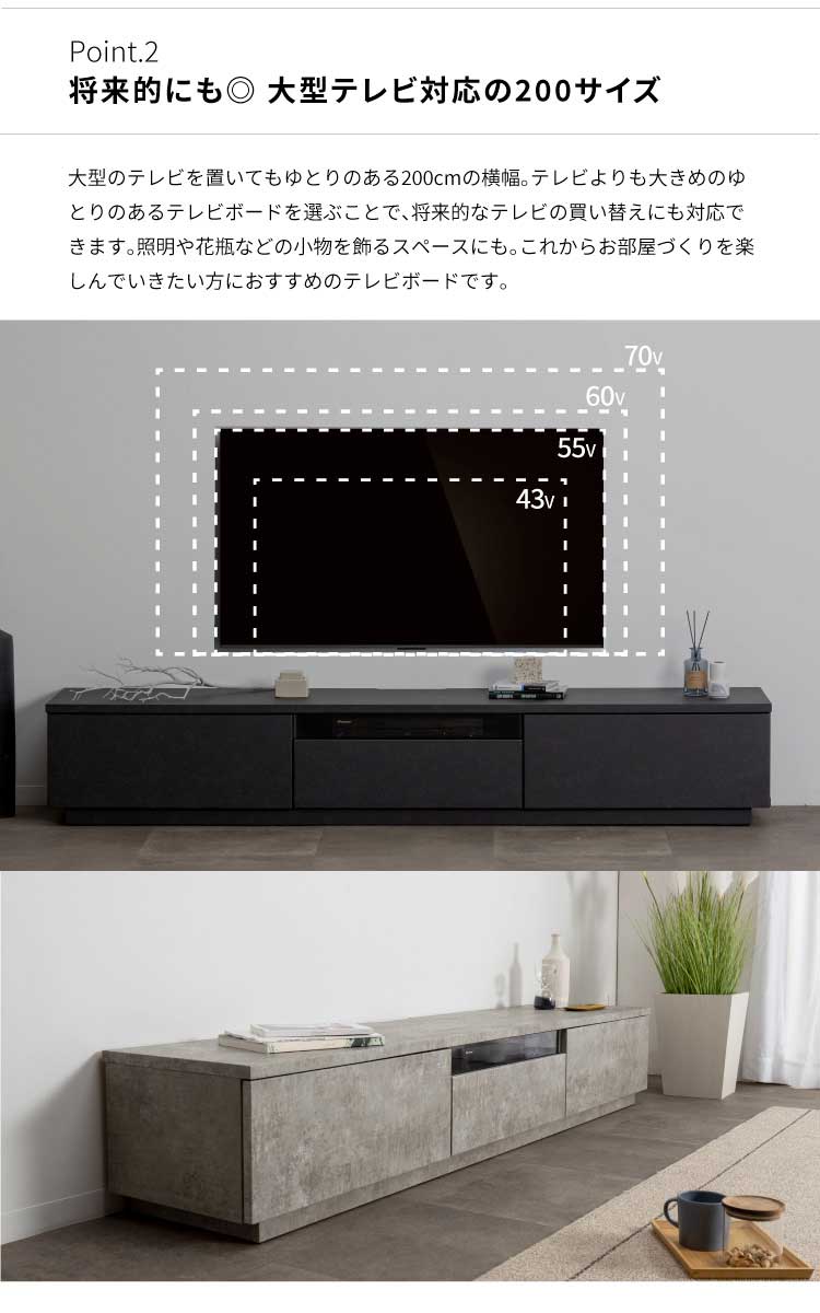 テレビボード 200センチ セラミック調 テレビ台 200cm 開梱設置 無料 ローボード テレビボード 200 おしゃれ TVボード 完成品 シンプル モダン リビング収納 赤外線 リモコン操作 大容量 収納 引き出し
