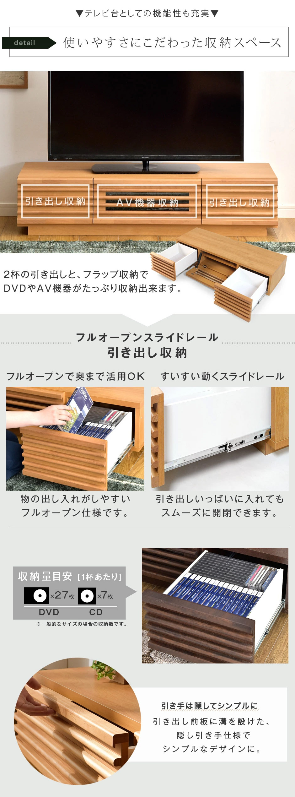 ・AV機器の配線もすっきりまとまる背面コード穴