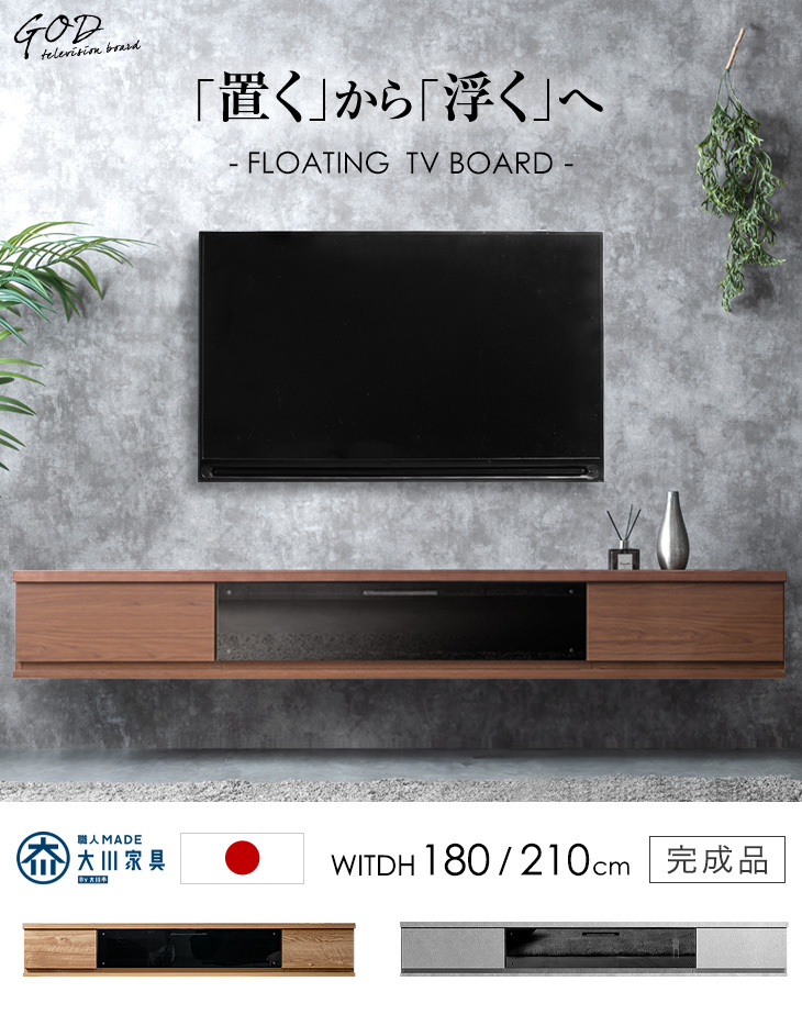 テレビ台 幅210 フロート 壁掛け おしゃれ 完成品 北欧 日本製 テレビボード 収納付き テレビラック 収納 TV台 大川家具
