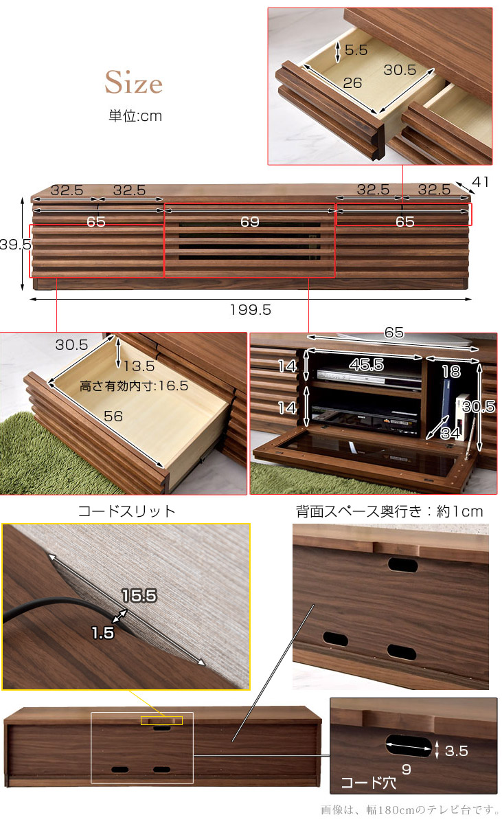 外寸:幅199.5×奥行41×高さ39.5cm