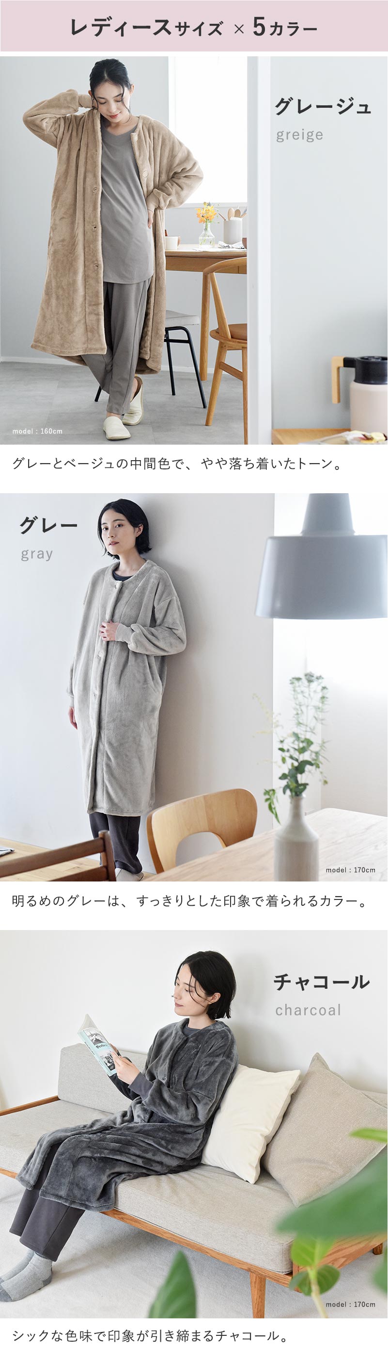ガウンコート風のデザインだから、ゴミ捨てにちょっと羽織って行くことも。冬のおうち時間に、まるっと1日活躍してくれます。