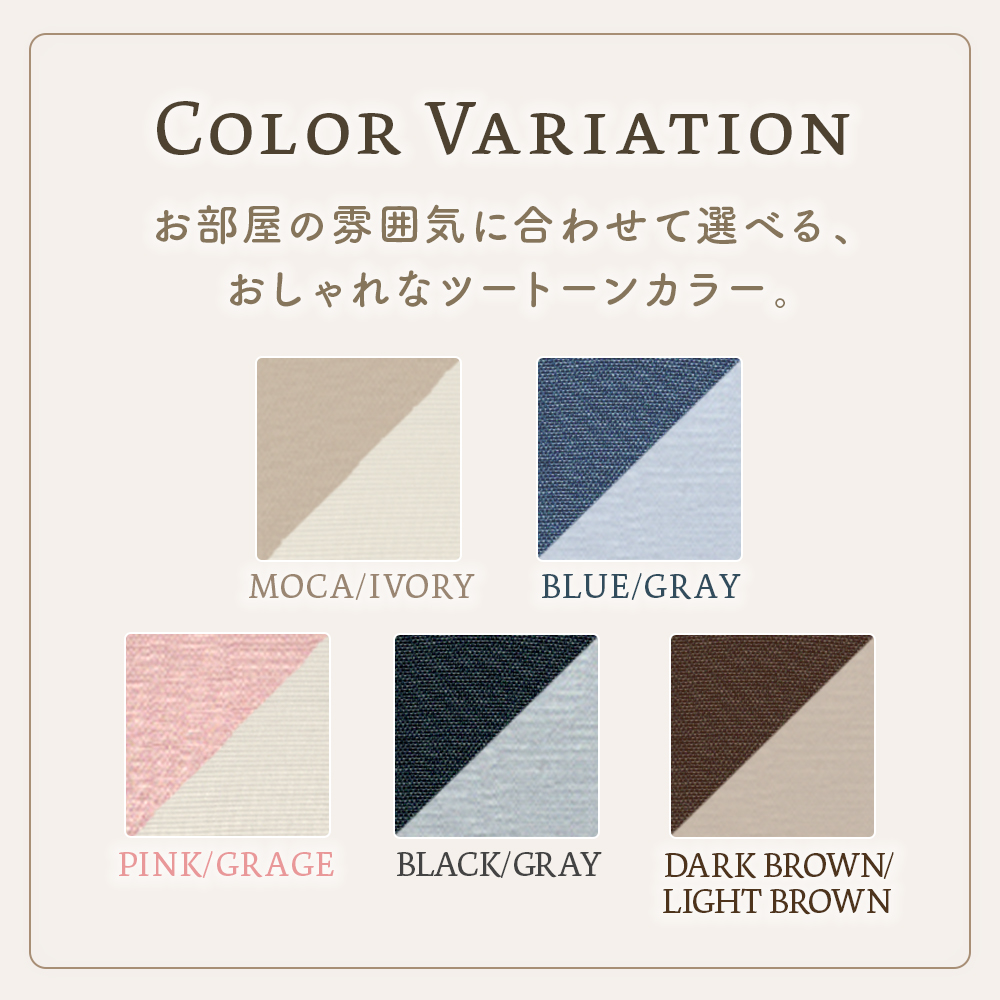 ・表と裏のカラーが違うリバーシブルなので、お部屋の雰囲気やスタイルを気分次第で簡単にアレンジできます。