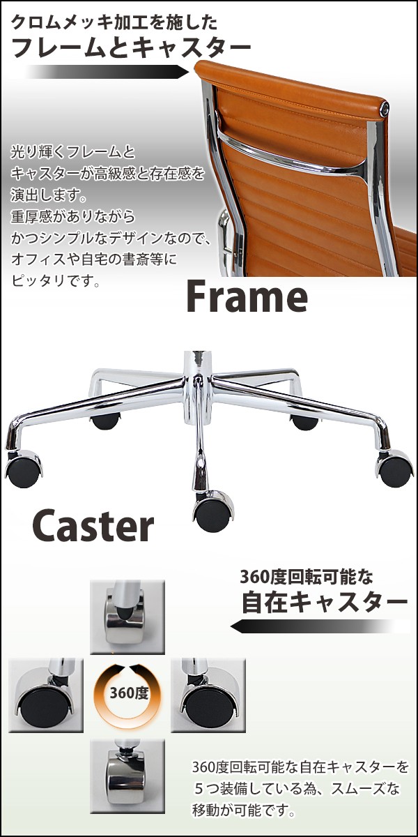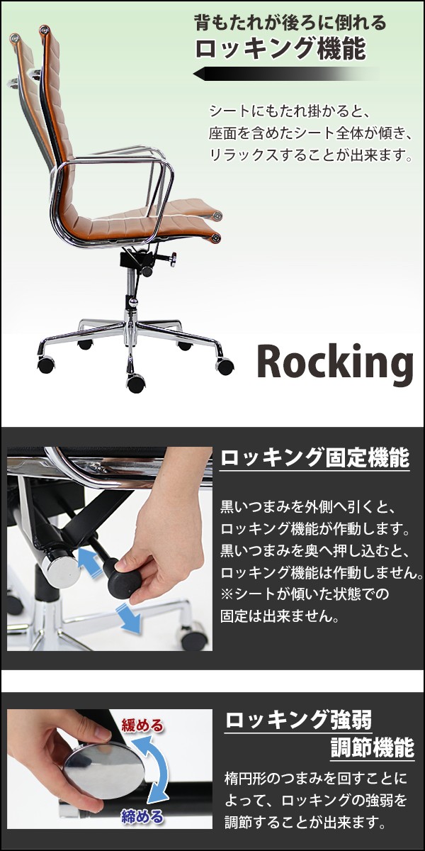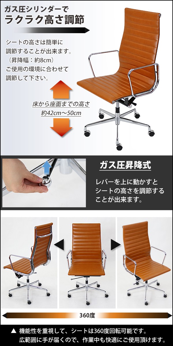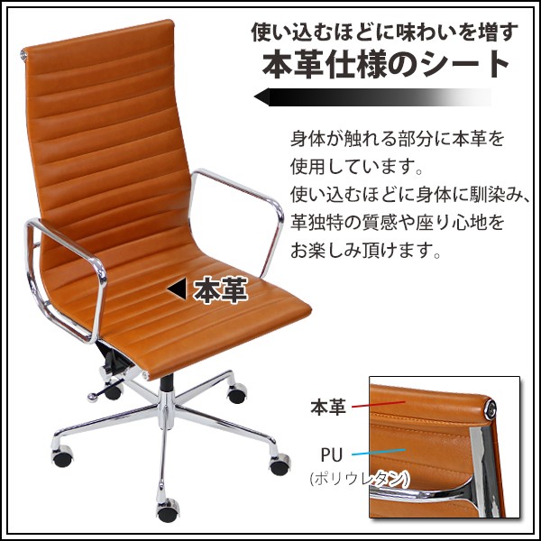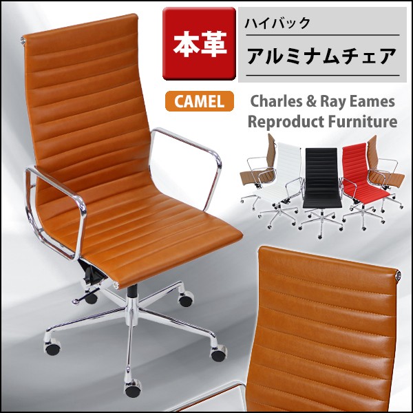 イームズアルミナムチェア ハイバックチェア 本革 キャメル キャスター 肘掛け クロムメッキ クロームメッキ 回転 昇降 高さ調節 レザー オフィスチェア ロッキングチェア ミーティングチェア 椅子 いす イス チェアー 会議室 書斎 1010lcamel