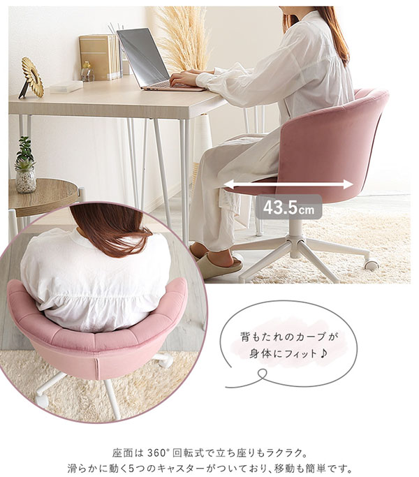 デスクチェア おしゃれ ベロア 疲れない 椅子 韓国 北欧 チェア かわいい イス サロン オフィスチェア 大人かわいい 可愛い椅子 おしゃれ椅子 ピンク椅子 姫系