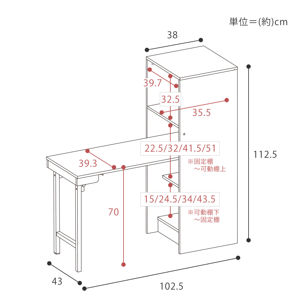 (約)幅38-102.5×奥行43×高さ112.5cm