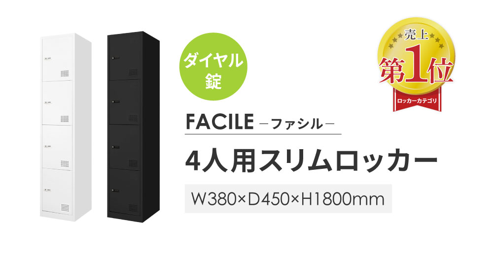 FACILE(ファシル) 4人用 スリムロッカー ダイヤル錠