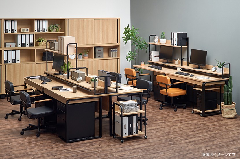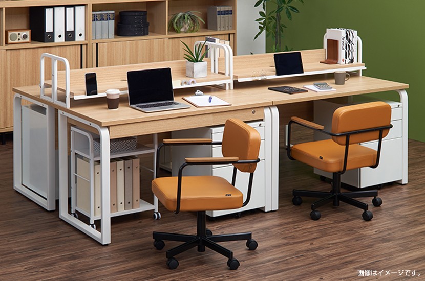 本体:強化紙化粧板・パーティクルボード、脚:スチール(粉体塗装)、キャスター:外側PVC・内側ナイロン
