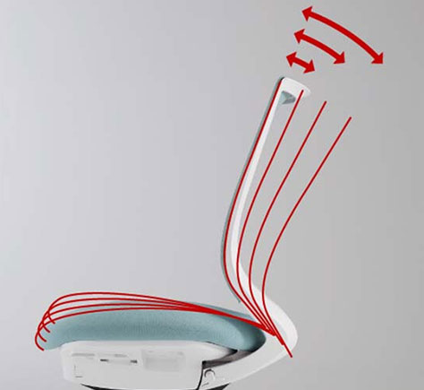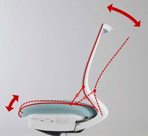 ロッキング時に背もたれと座面が連動する際のスムーズなフィット感や、どの角度でもバランスをとりやすい反力特性、座る人の体重に合わせてロッキング強度を自動調整する機能が、快適な作業姿勢をサポートします。