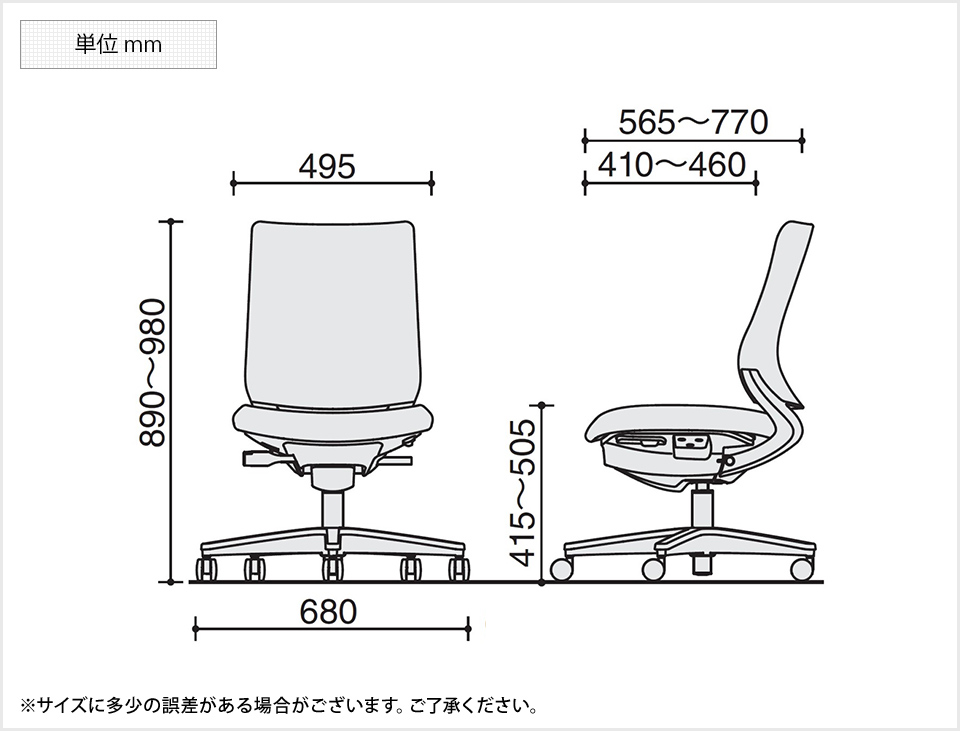 外寸 / 幅680×奥行680×高さ890〜980mm