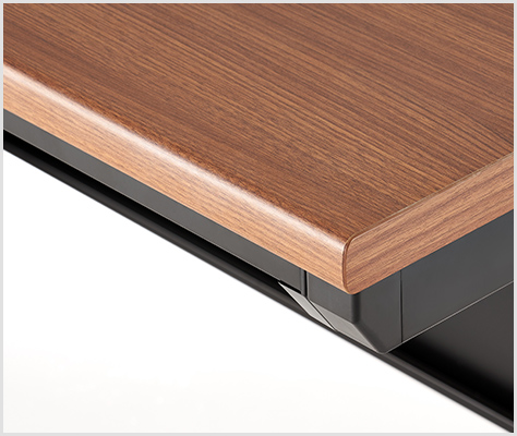 天板の前面には、角がないR形状のポストフォーム加工が施されています。腕にあたってもやさしい形状です。