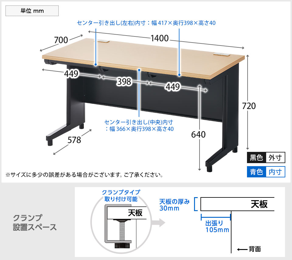 幅1400×奥行700×高さ720mm