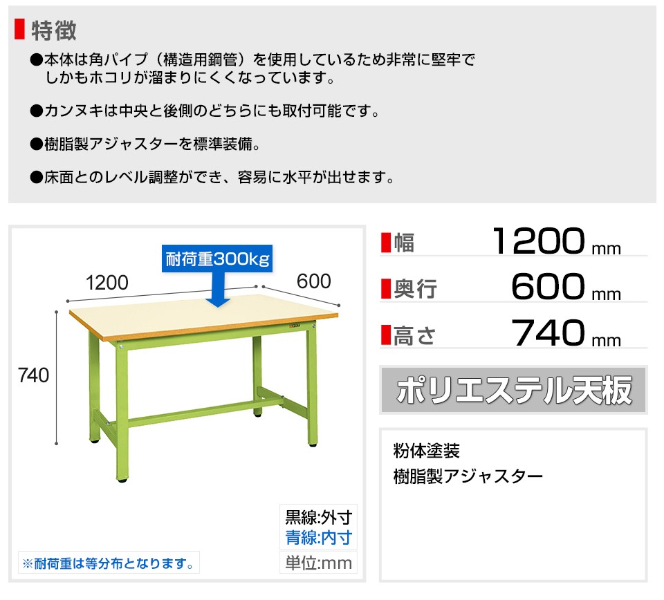 サカエ 軽量作業台 作業用テーブル KSタイプ 均等耐荷重300kg 幅1200×奥行600×高さ740mm KS-126PI