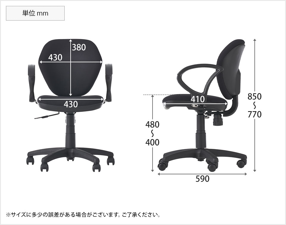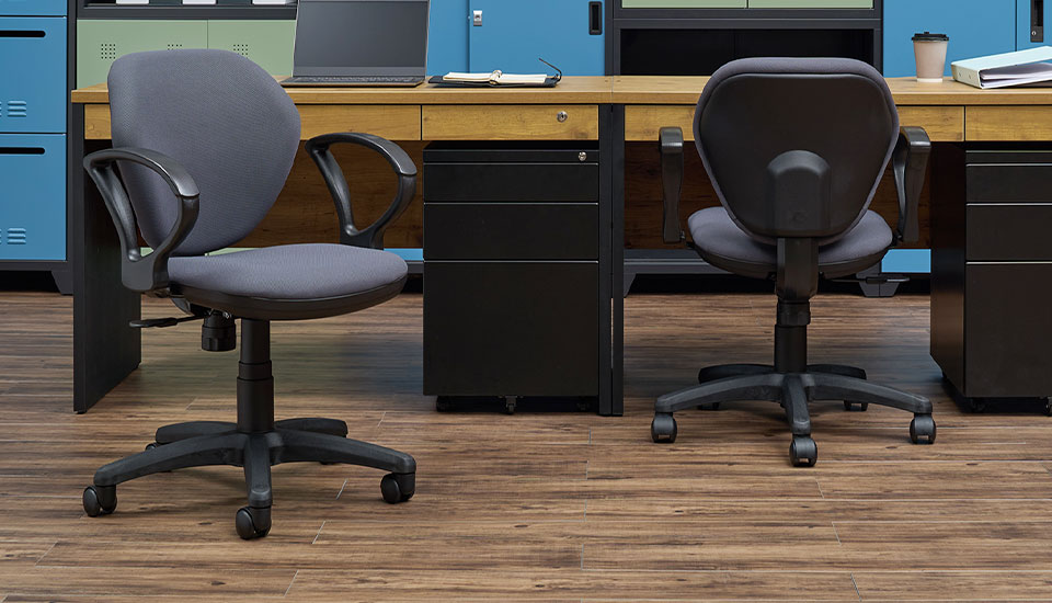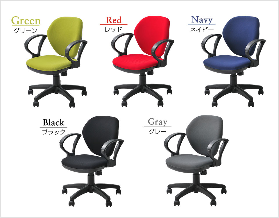 カラーは、デスクや空間イメージに合わせて選べます。肘付きタイプは、作業時の腕のサポートだけでなく、安定した着座・立ち上がりにも役立ちます。