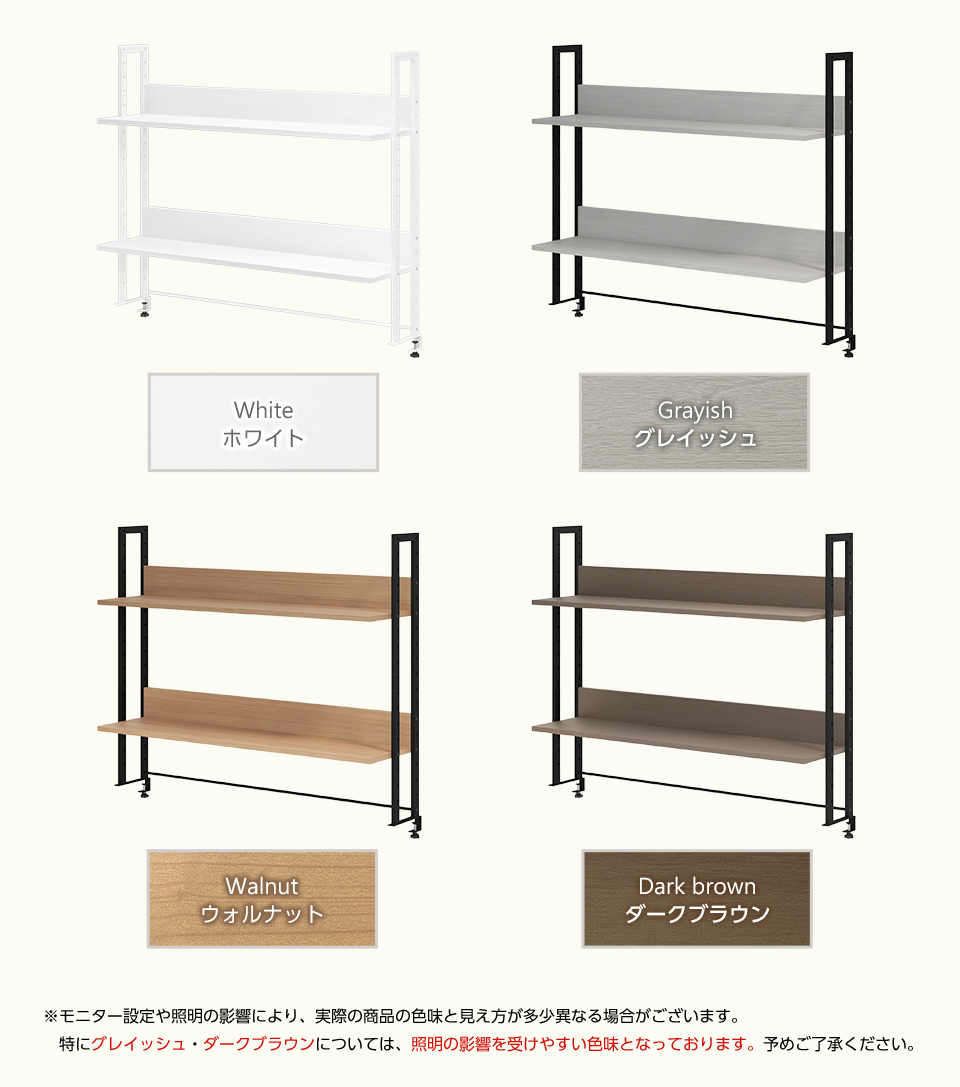 2段とも18段階高さ調節ができるので、お好みの位置に調整可能。全段収納に使用したり、下段にはPCモニターを設置したりと、活用の幅が広がります。