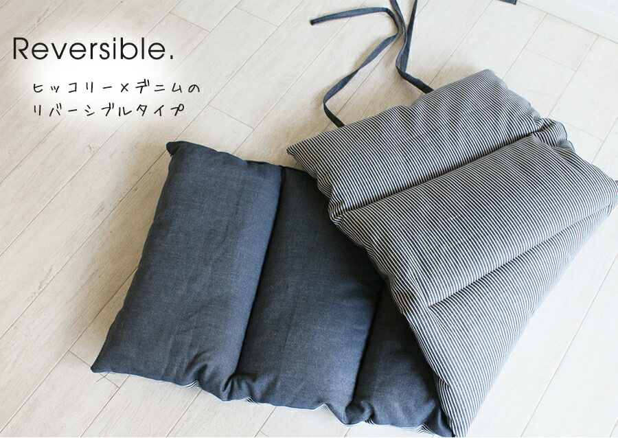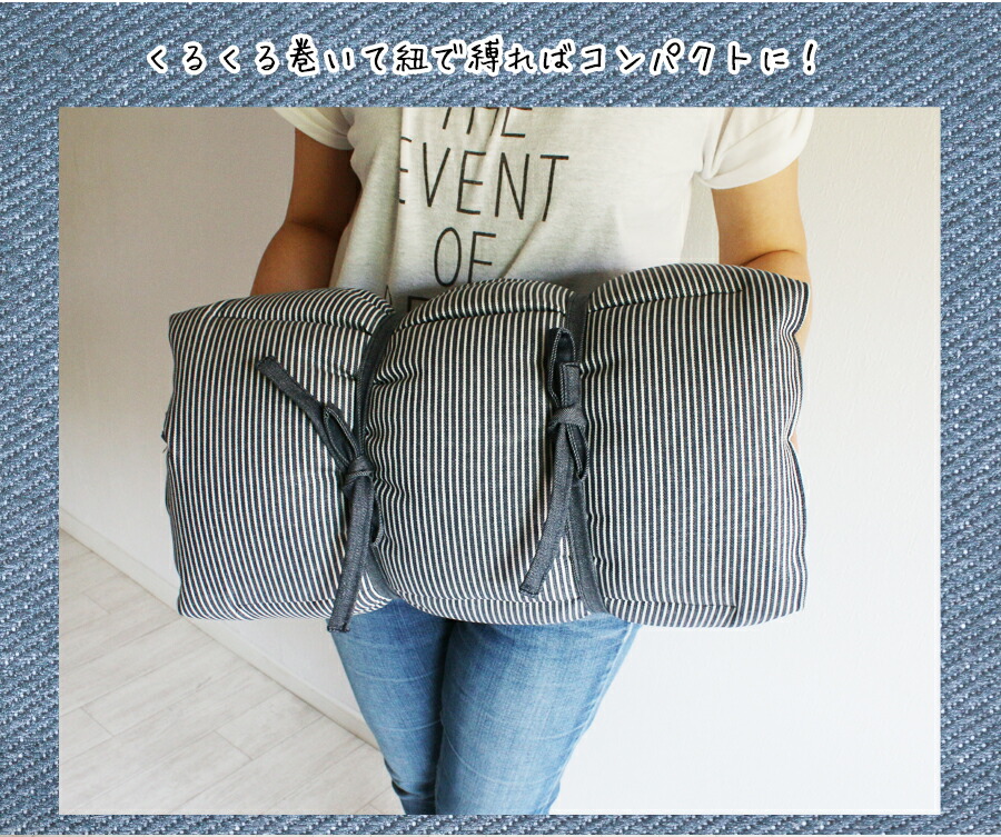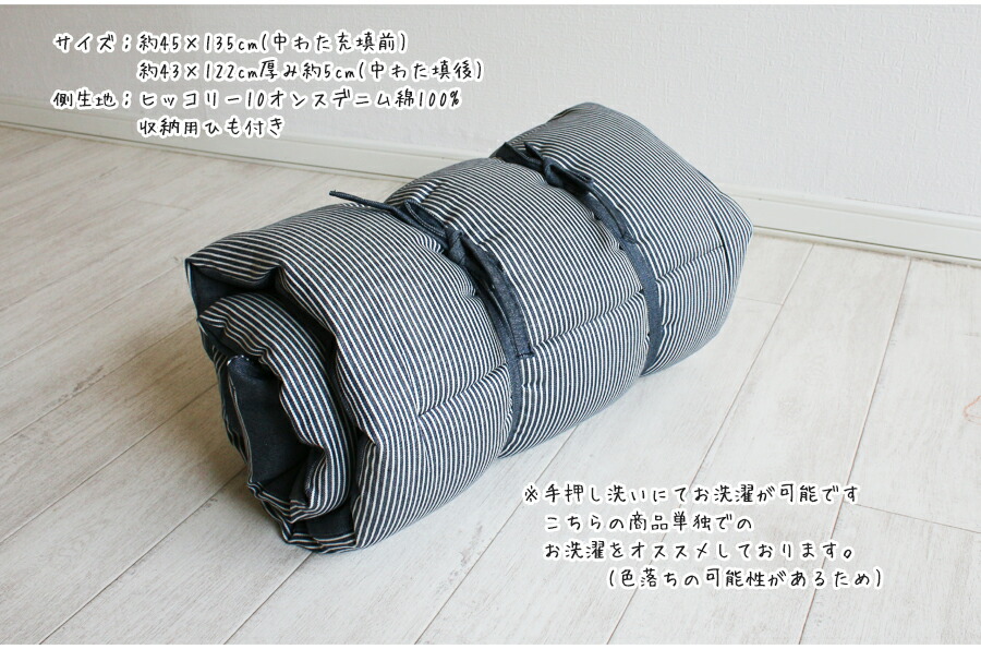 シートクッション ひも付き ヒッコリー&デニム キャンプマット ロング 135×45 長座布団 日本製 佐川またはヤマト便
