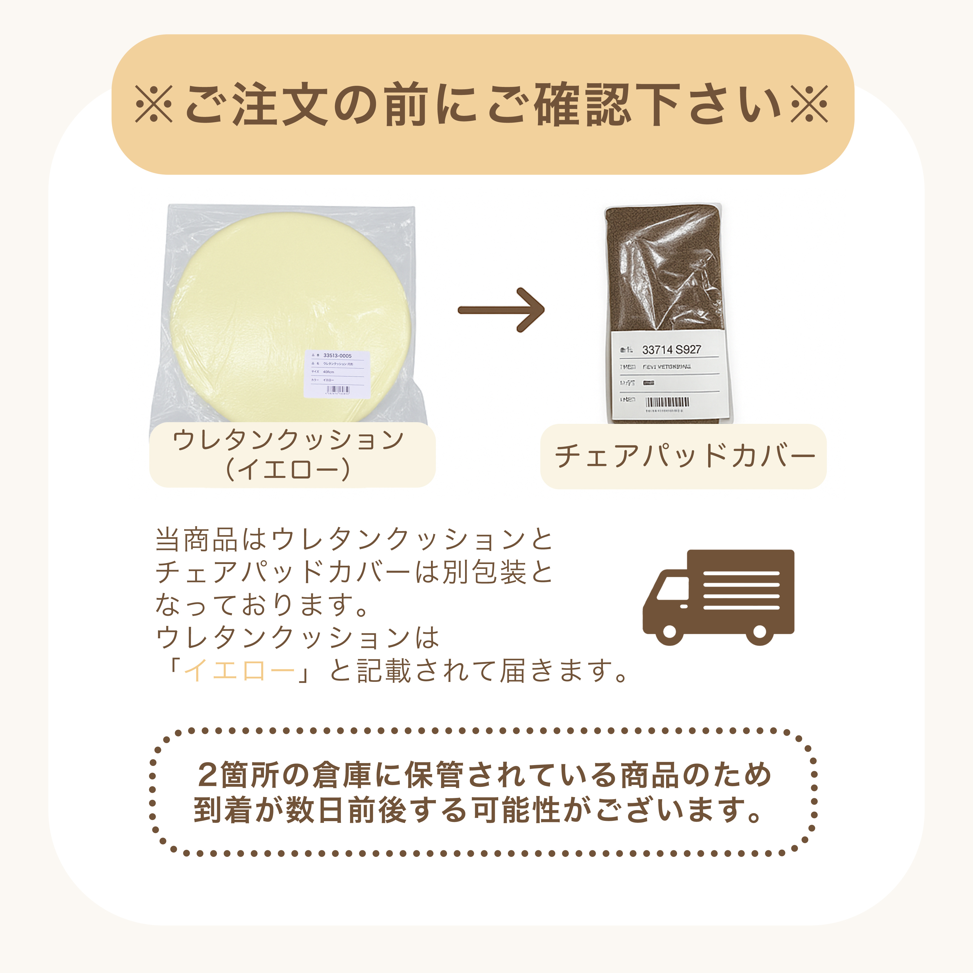 ウレタンとカバーが別になった梱包状態に変更になりました。