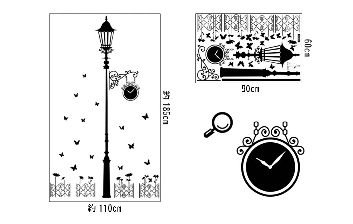 商 品 名:時計街灯/ウォールステッカー/ウォールシール/壁シール