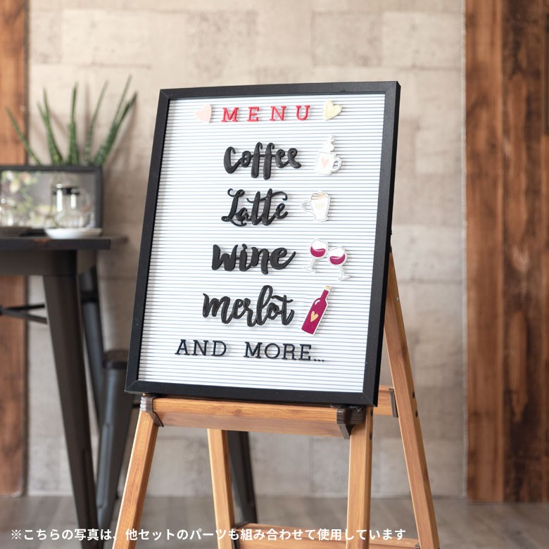 レターボード用文字パーツ 4種 英語 筆記体 ブラック サインボード メッセージボード ウェルカムボード テキストパーツ 66761