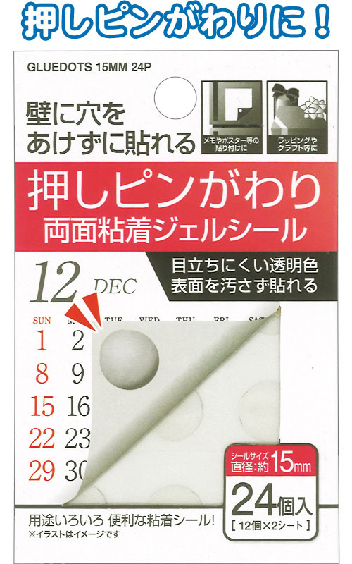 【まとめ買い=注文単位12個】押しピンがわりに両面粘着ジェルシール15mm 24個入 44-219(se2c468)