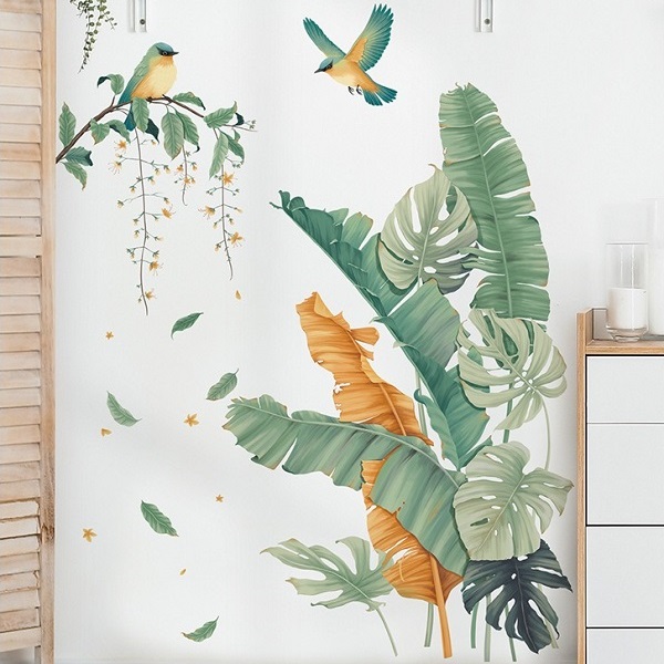 ウォールステッカー 植物 おしゃれ 鳥 南国 グリーン 緑 壁 はがせる 壁紙 シール モンステラ リーフ モダン トイレ 自然 草 ウオールステッカー 蔦 ジャングル