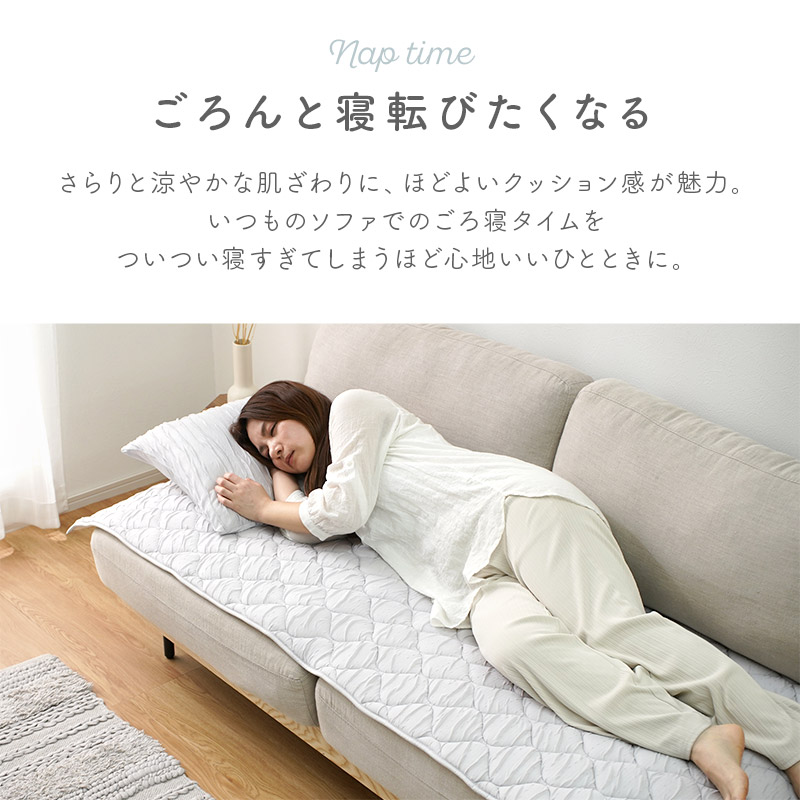 ソファパッド ソファカバー 3人掛け 2人掛け 65×180cm 長方形 くしゅくしゅ キルティング レーヨン さらさら 北欧 かわいい 抗菌 防臭 春 夏 秋 シンプル