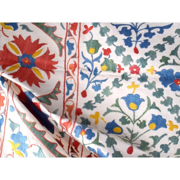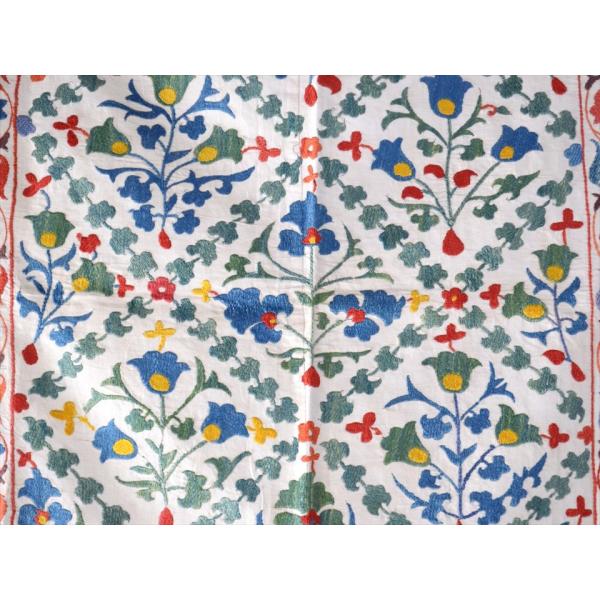 Suzani, Uzbekistan Suzani, Embroidary ウズベキスタン・スザンニ刺繍布 115x94cm アンティークデザイン 咲き誇る花・トレリス