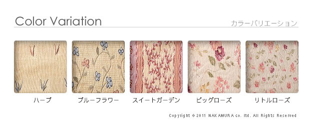 カラー:ハーブ・ブルーフラワー・スイートガーデン・ビッグローズ・リトルローズ(商品によって柄の出方が違います)