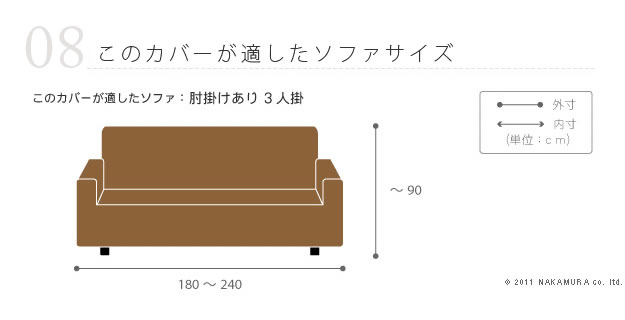 適合ソファサイズ:幅180〜240cm・高さ90cmまで