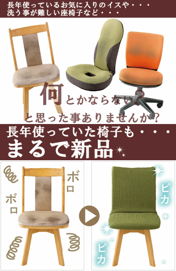 ■洗えない座椅子やダイニングの椅子が新品に生まれ変わるぴったりフィットカバー
