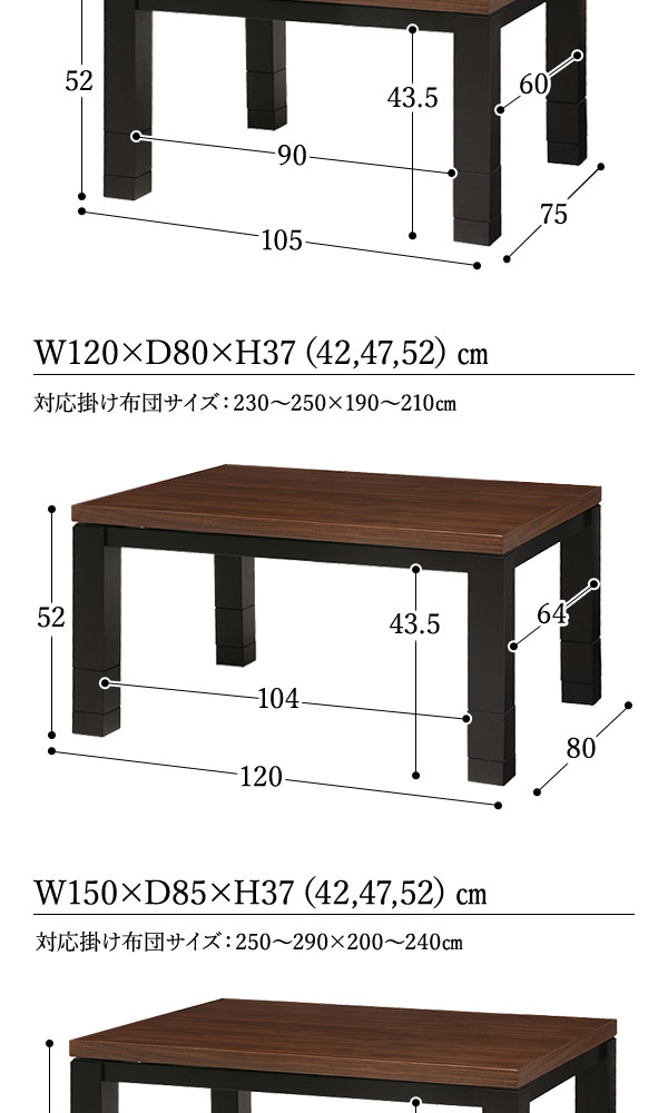 【サイズ】幅105×奥行75×高さ37/42/47/52cm