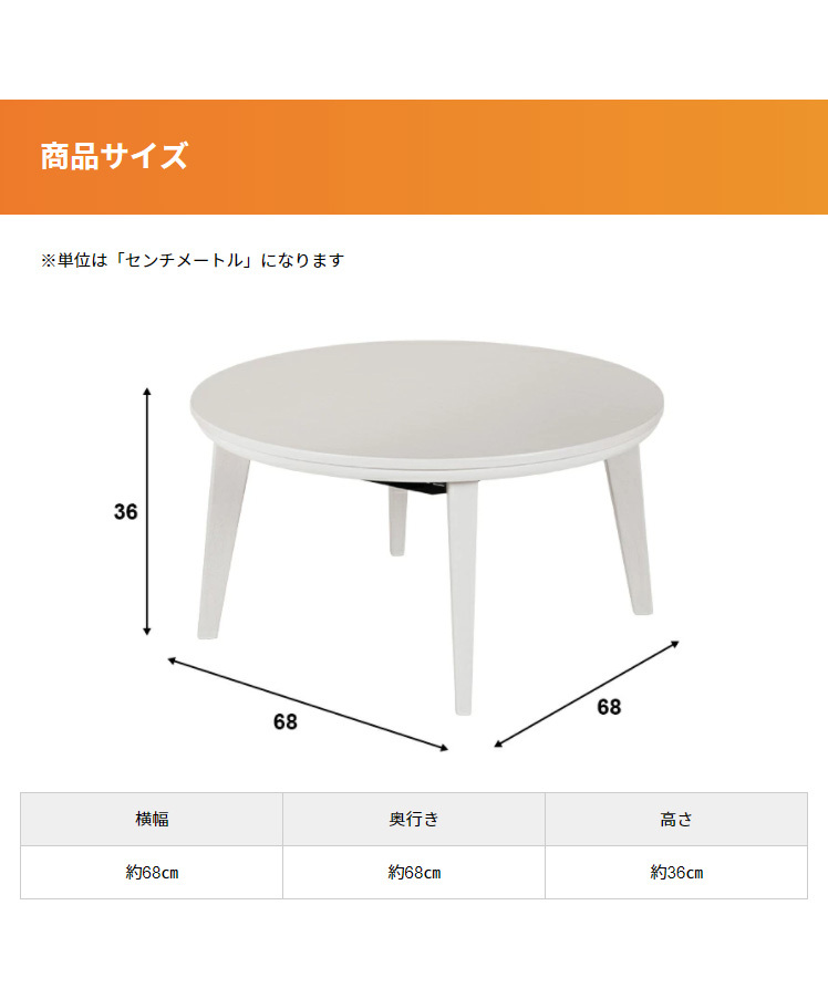 円形こたつテーブル 直径68cm おしゃれ センターテーブル ローテーブル リビングテーブル コーヒーテーブル 円形テーブル 丸 1年保証