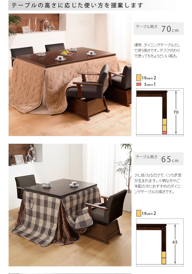 Skutt 135×80 ハイタイプこたつテーブル
