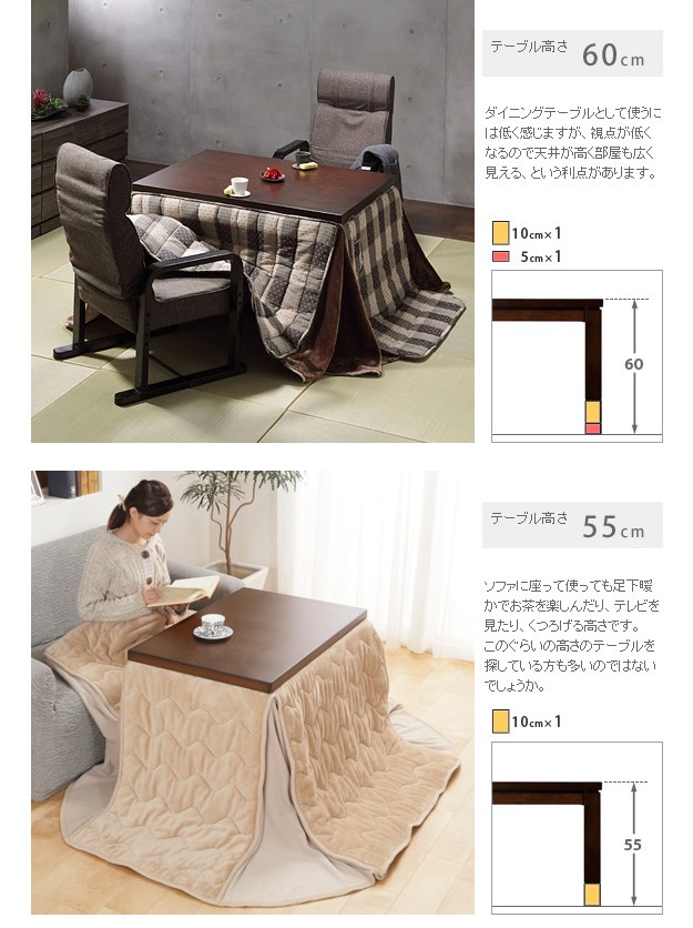 Skutt 80×80 ハイタイプこたつテーブル