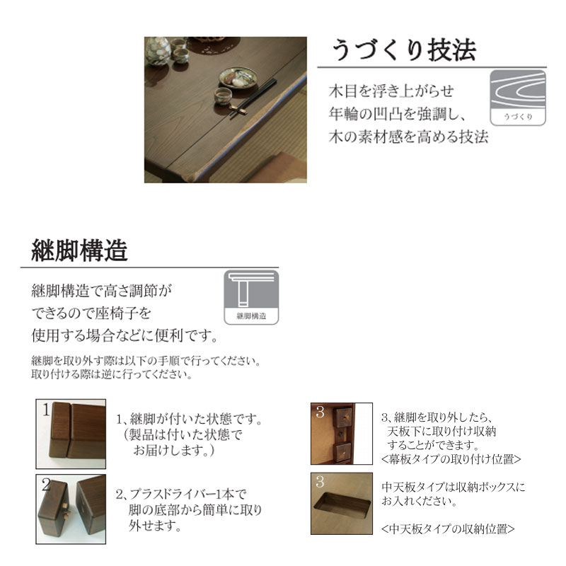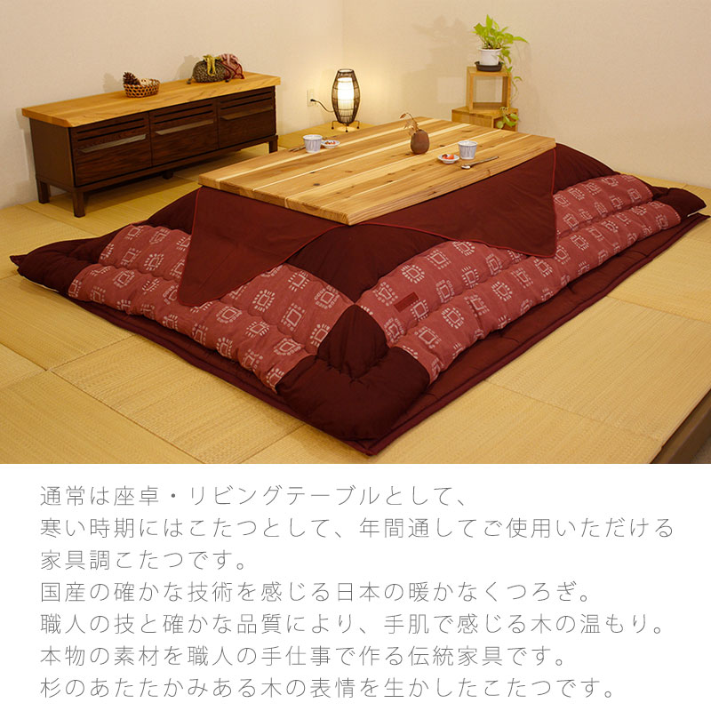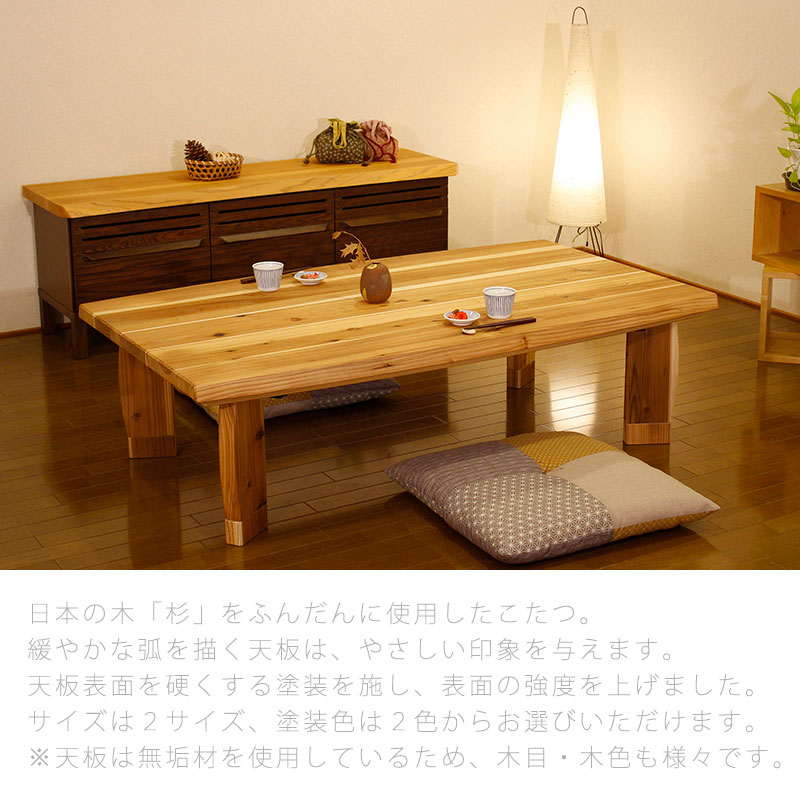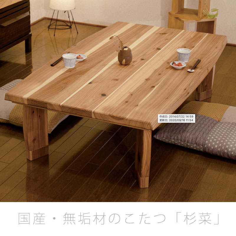 こたつ リビングテーブル 座卓 家具調こたつ 暖房器具 135cm 150cm 長方形 杉無垢材 国産 杉菜KR すぎな 商品詳細