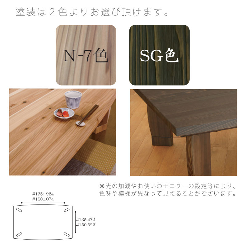 こたつ リビングテーブル 座卓 家具調こたつ 暖房器具 135cm 150cm 長方形 杉無垢材 国産 杉菜KR すぎな 商品説明