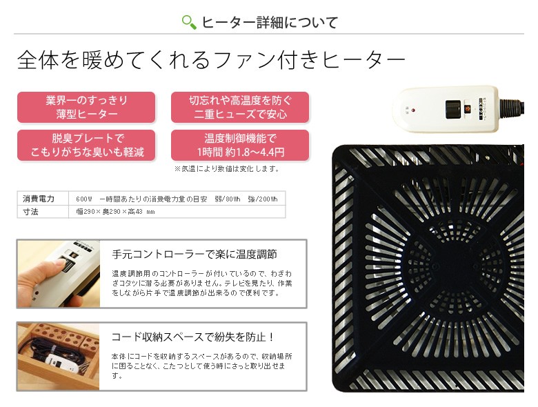 ・電気代目安(強)約4.9円/(弱)約1.9円