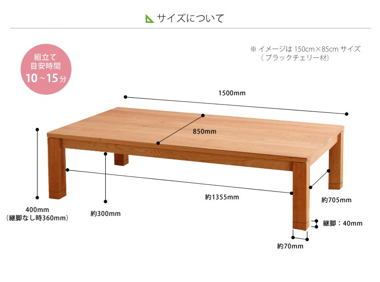 【a5-0072】家具調コタツ・こたつ 長方形 150cm幅 木製こたつ