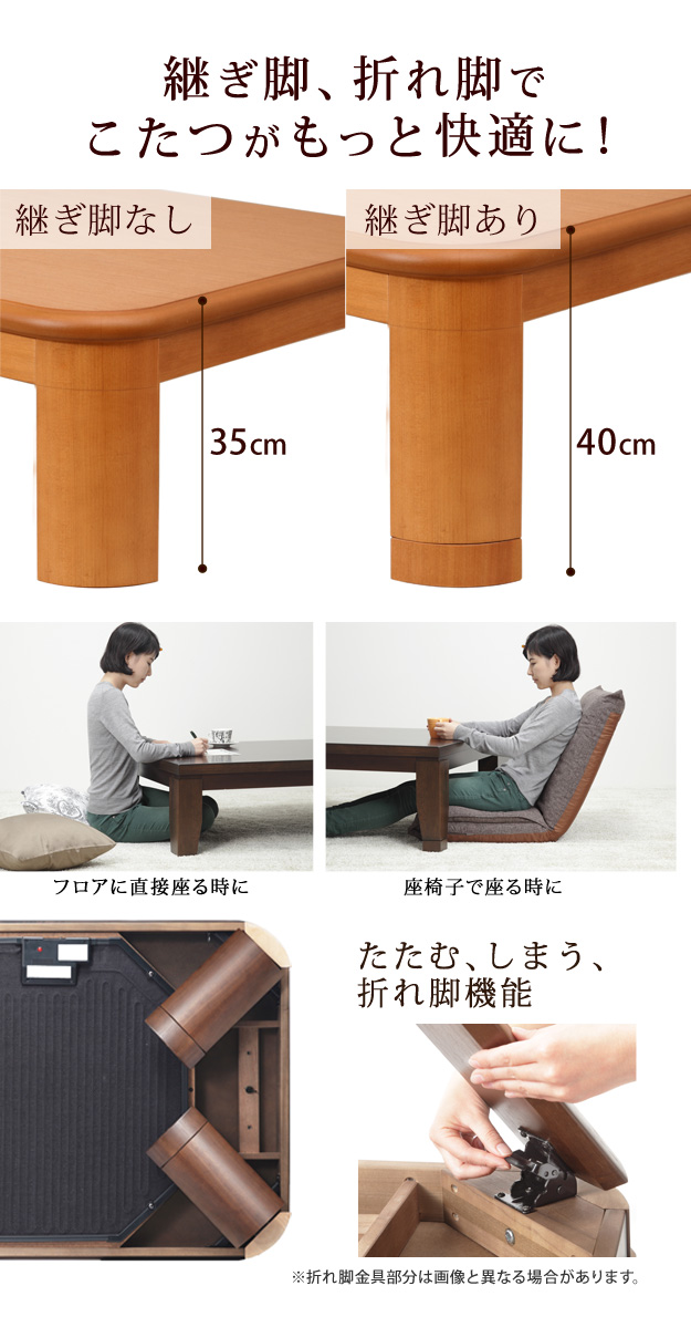 こたつ テーブル 長方形 国産 折足 継足 高さ調節 木目 在宅