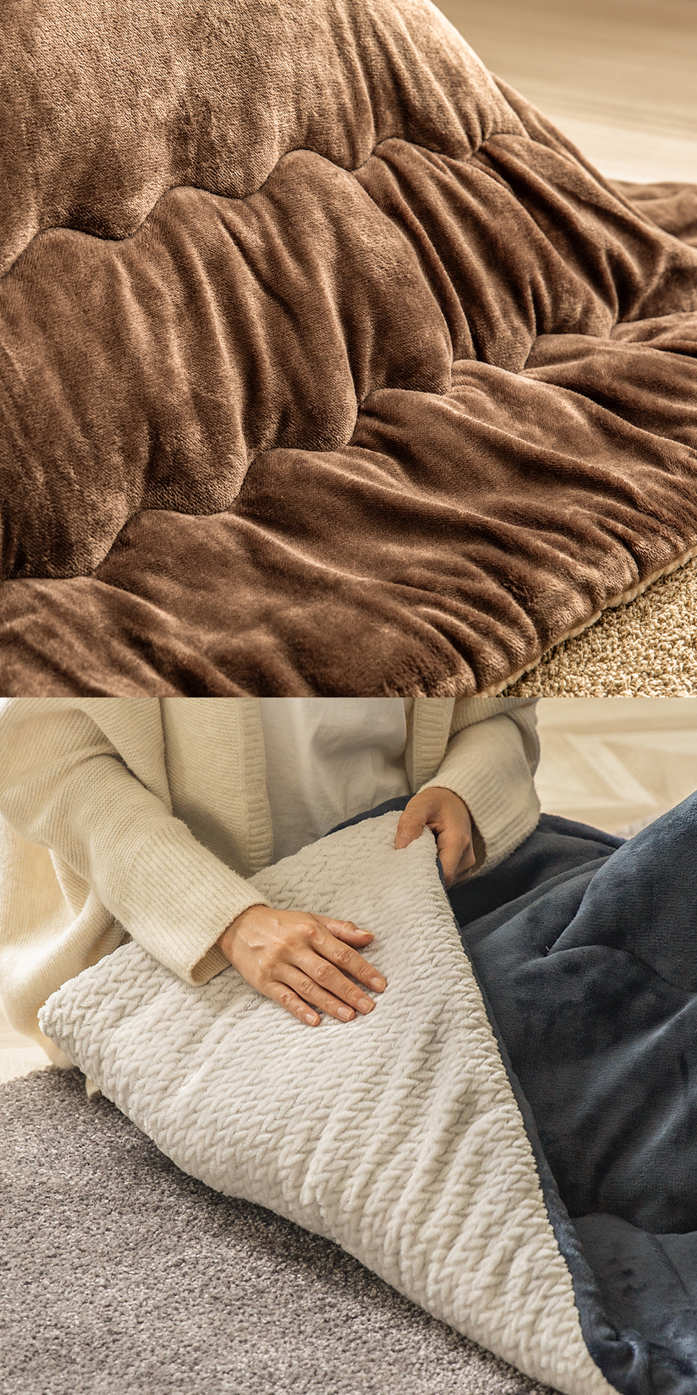 柔らかくあたたかなフランネル生地を使用した、表と裏でカラーと柄が異なる2WAY仕様のこたつ布団です。