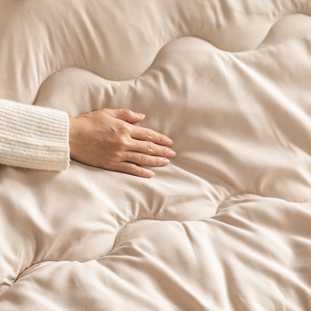 生地の表面にミクロな毛羽を立たせ、桃の皮のように肌あたりを柔らかく滑らかにしたこたつ布団です。