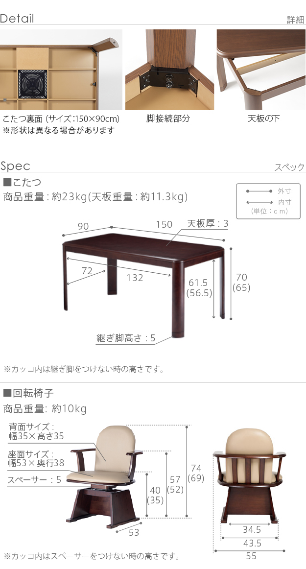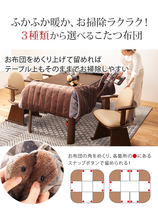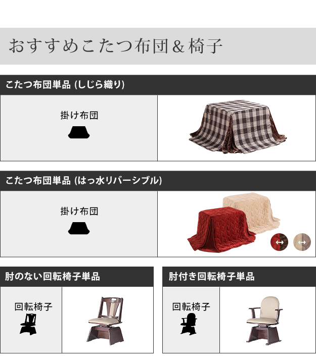 こたつ+選べるこたつ布団+肘付き回転椅子セット