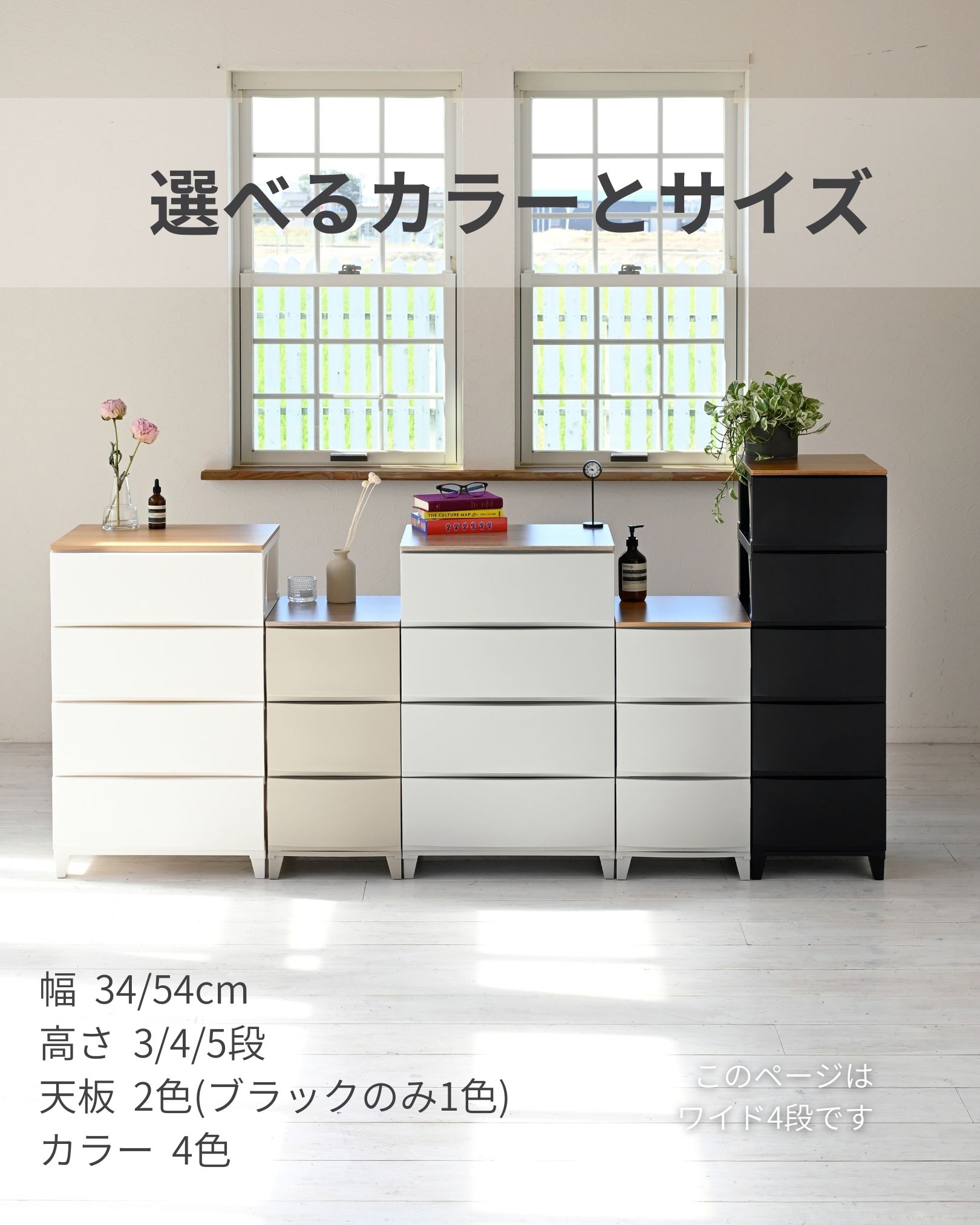 チェスト 木製 天板付き 衣装ケース 収納ケース ルームス ワイド 4段 幅54 奥行42 高さ88cm 子供部屋 ランドリー 収納 引き出し タンス サンカ SANKA