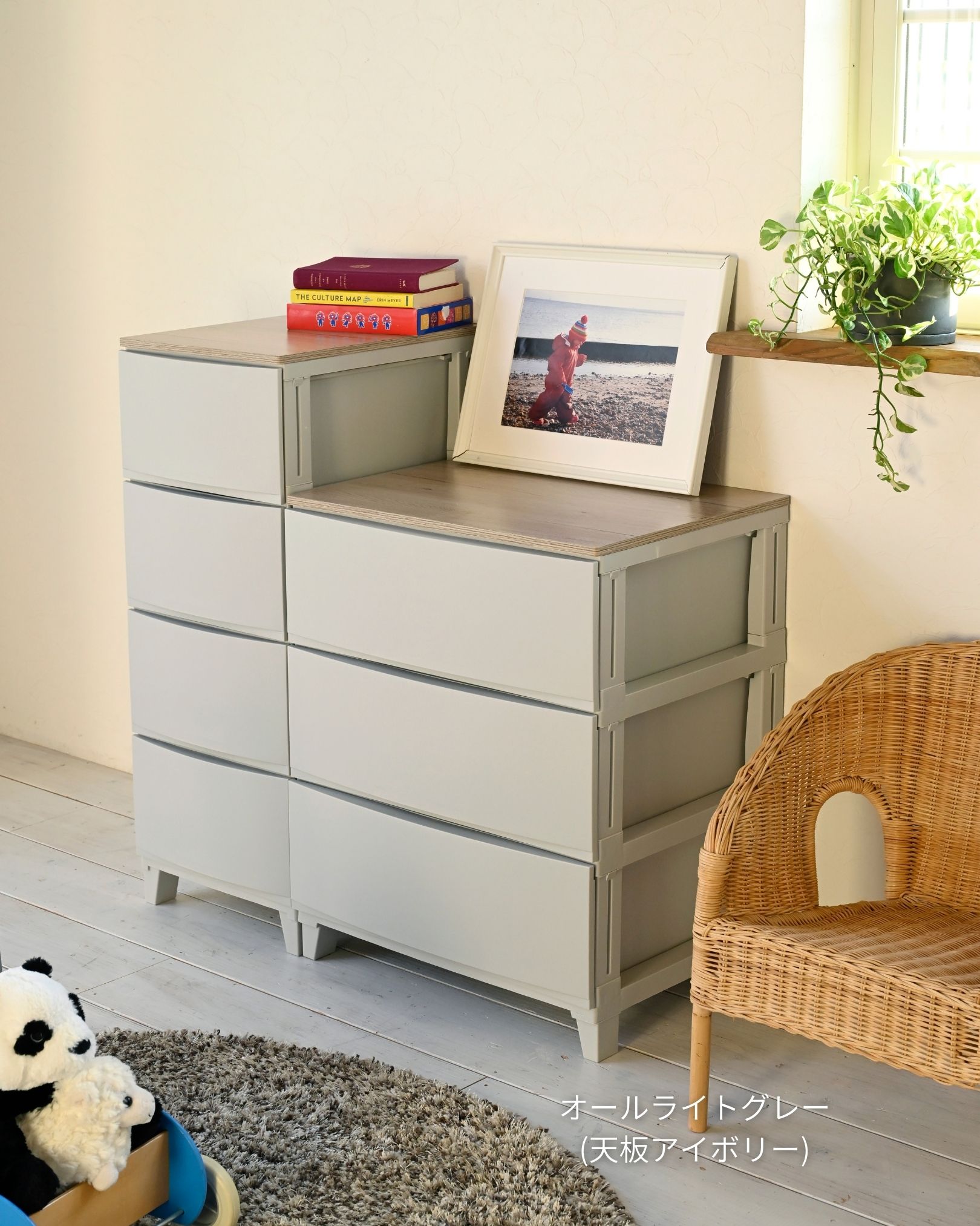 天板: MDF(メラミン樹脂)、本体: ポリプロピレン