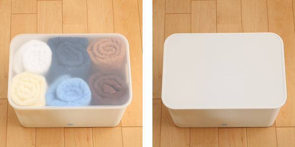 別売りのフタを使うことで、キレイに重ねてスッキリ収納することができます。