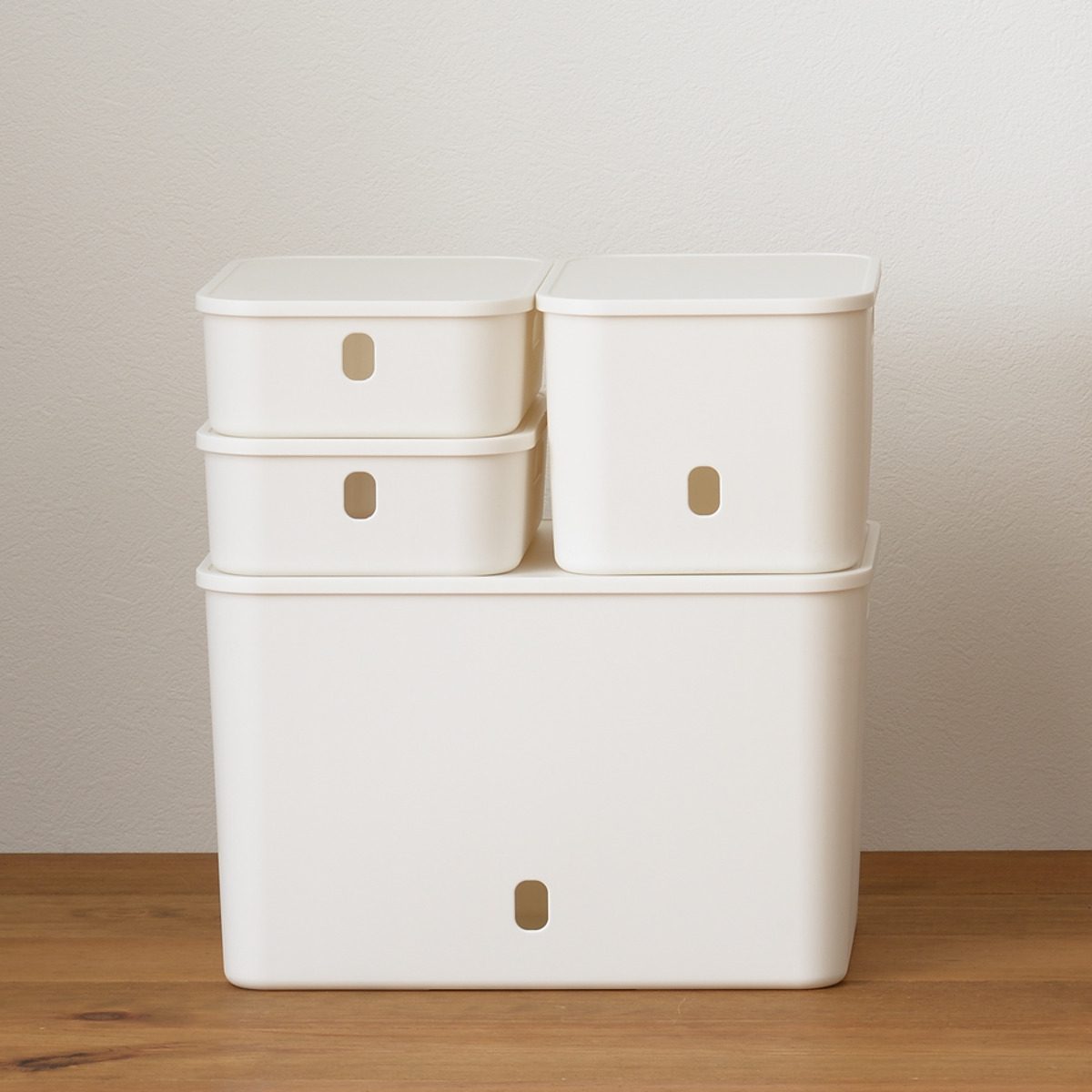 清潔感のあるシンプルな収納ボックスなので、シリーズで組み合わせて使うことで統一感が生まれ、スッキリとしたお部屋になります。無駄のないシンプルなデザインで、リビングなどのよく目に入る場所での使用にもおすすめです。