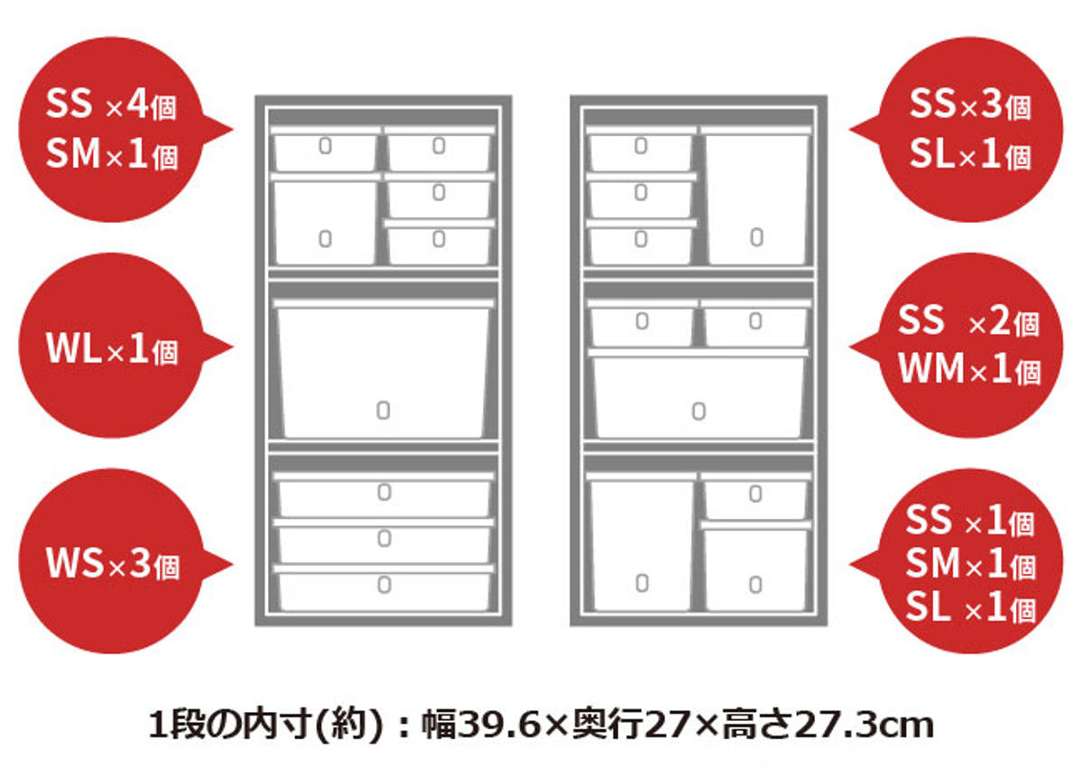 ※カラーボックスの種類によっては内寸サイズが異なるため、入れられるボックス数が異なる場合がございます。